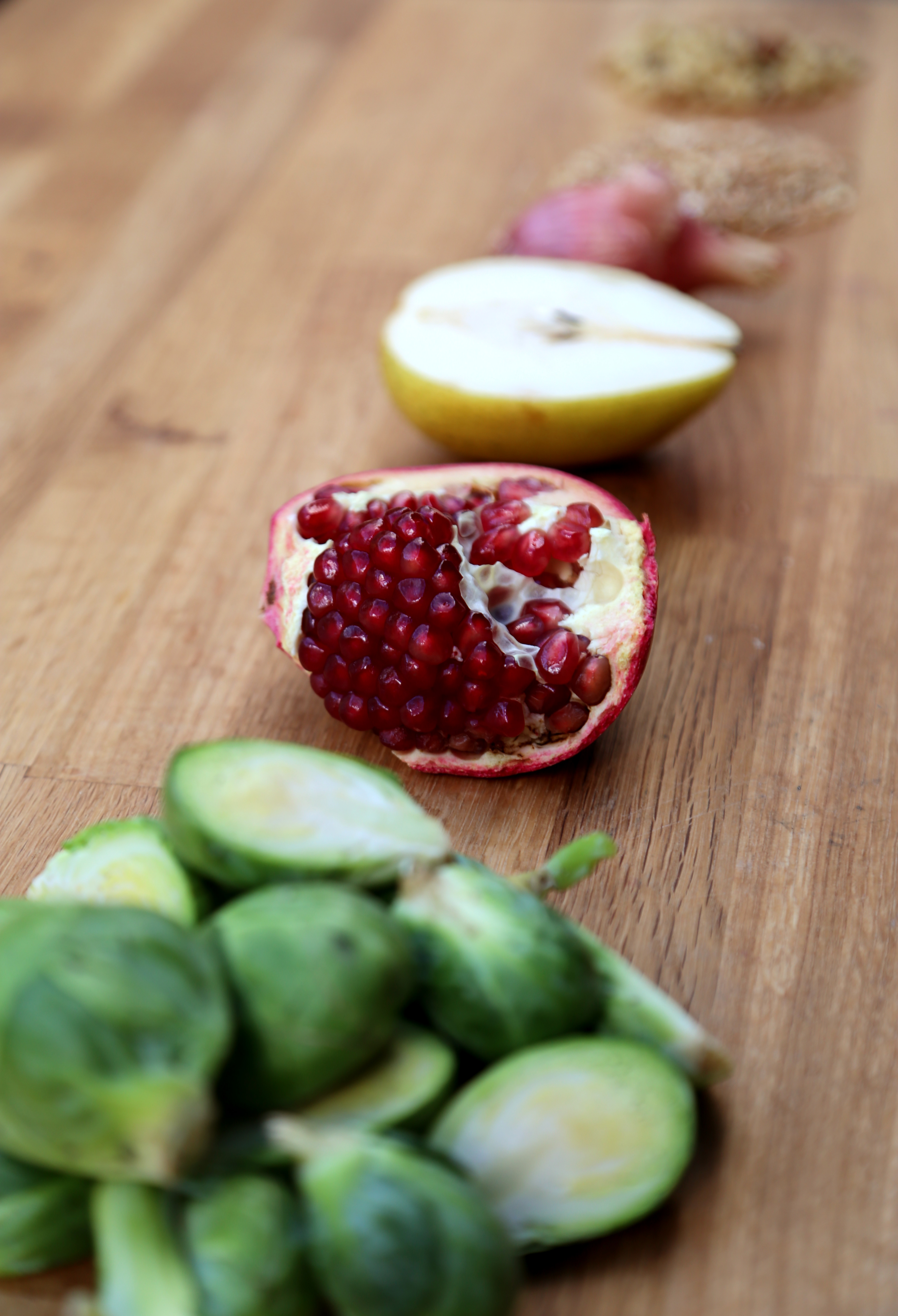 My current favorite fresh fruits: pears, pomegranate, apples and oranges.